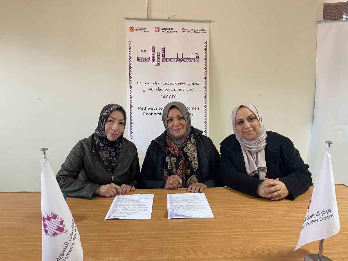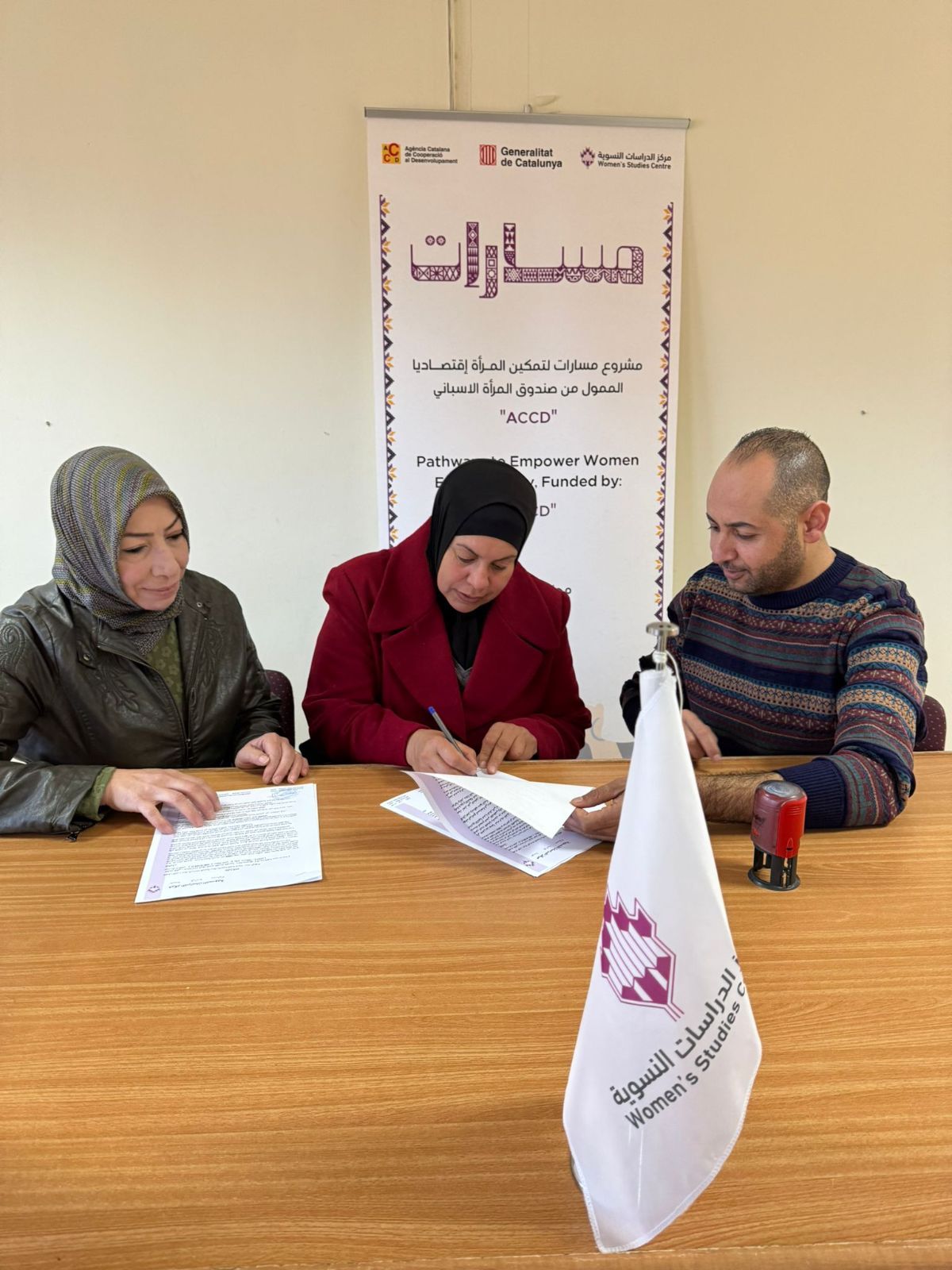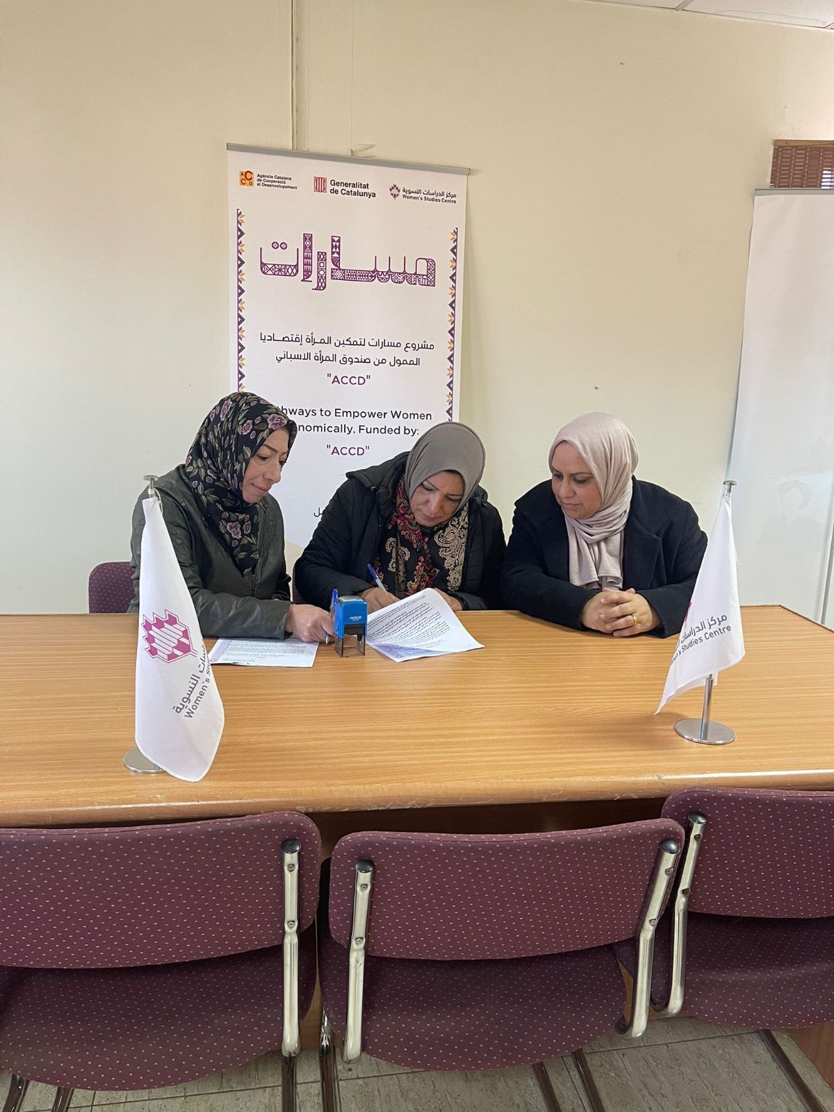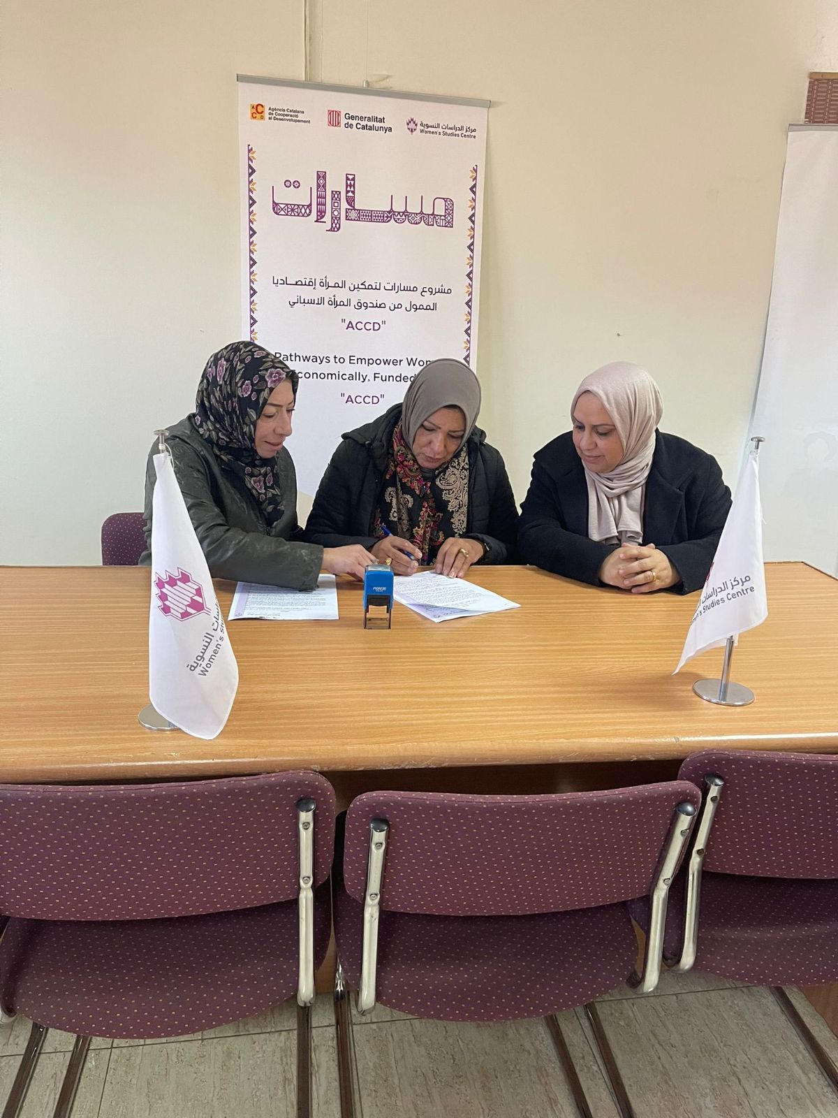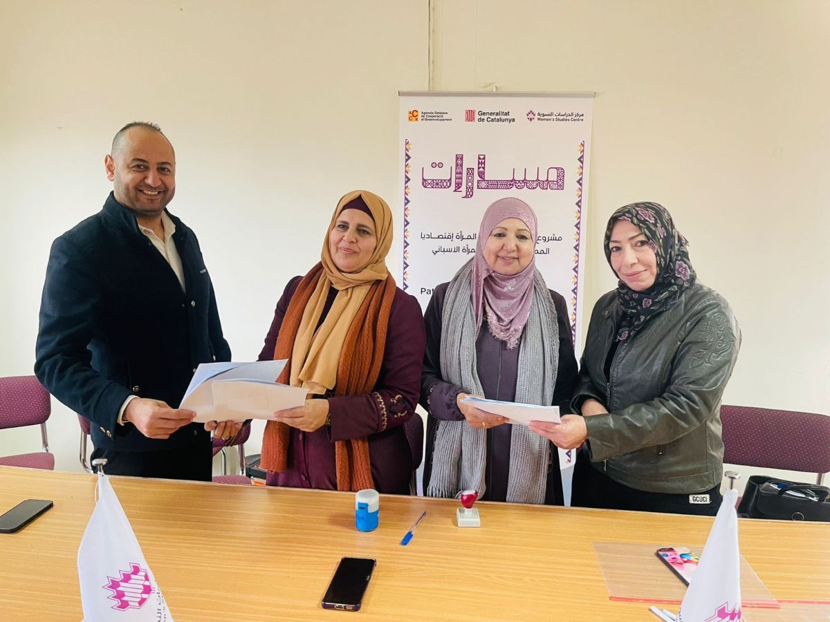 جانب من توقيع مذكرات التفاهم مع المؤسسات الأربعة المستهدفة ضمن مشروع (مسارات ) لتمكين المرأة إقتصاديا في محافظة الخليل وهم: